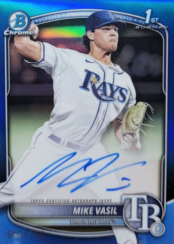 2025 Bowman Mike Vasil Chrome Auto Blue Refractor 1st Prospect #76/150 Rays