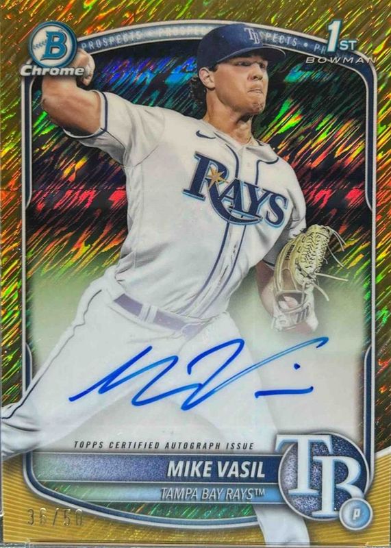 2025 Bowman Mike Vasil Chrome Auto Gold Shimmer Refractor 1st #47/50