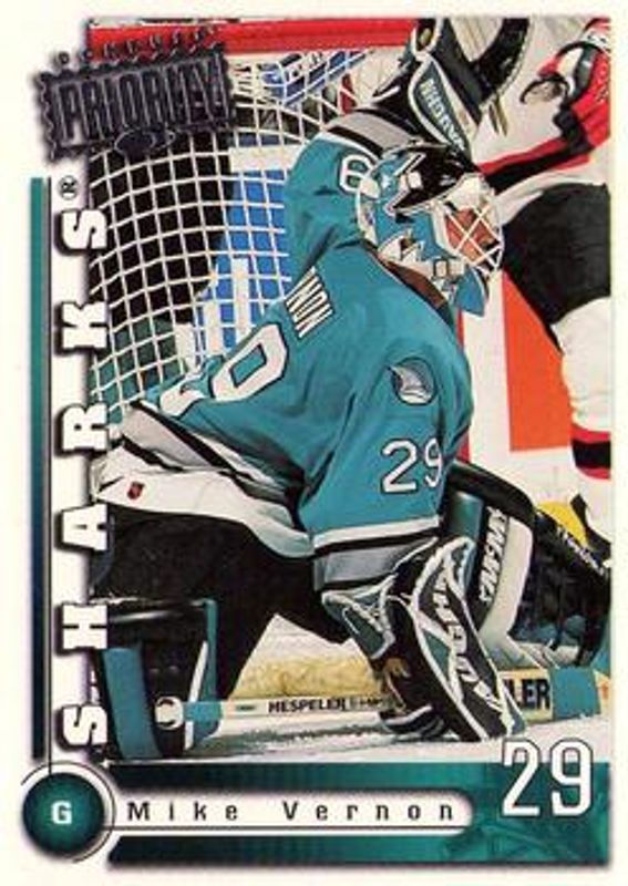 The Mike Vernon 1997 Donruss Priority #159 Base card is 1 of 4 Mike Vernon's card variations in the 1997 Donruss Priority set being tracked by Sports Card Investor, including Postmaster Generals Promos, Stamp of Approval /100, and Postmaster Generals /1500.