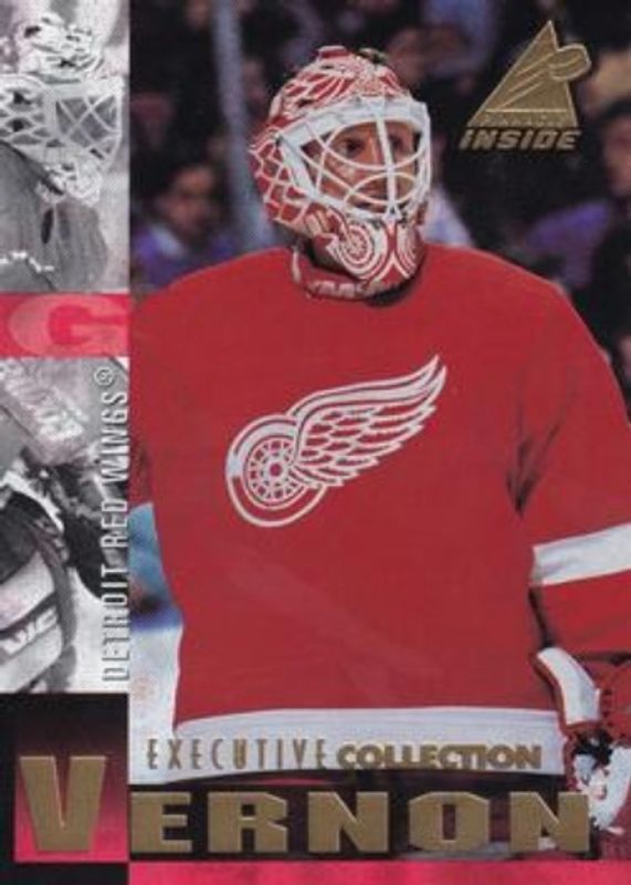 The Mike Vernon 1997 Pinnacle Inside #84 Executive Collection card is 1 of 7 Mike Vernon's card variations in the 1997 Pinnacle Inside set being tracked by Sports Card Investor, including Base, Coaches Collection, Cans, Cans - Gold, and Promos.
