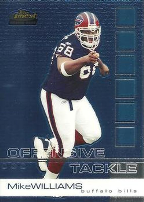 Mike Williams' Football cards are available in at least 87 sets. Mike Williams' biggest 7-day price movers are 2002 Topps Finest #88 Base, 2002 Topps Finest #88 Refractor /250, and 2002 Topps Finest #88 Gold Refractor /25.