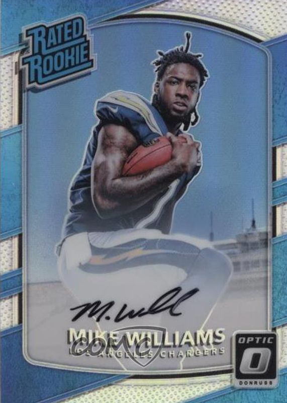 The Mike Williams 2017 Optic #174 Rated Rookie Autographs - Holo /99 card in Raw condition has not changed in price in the last 30 days and was last sold for $6.50 .