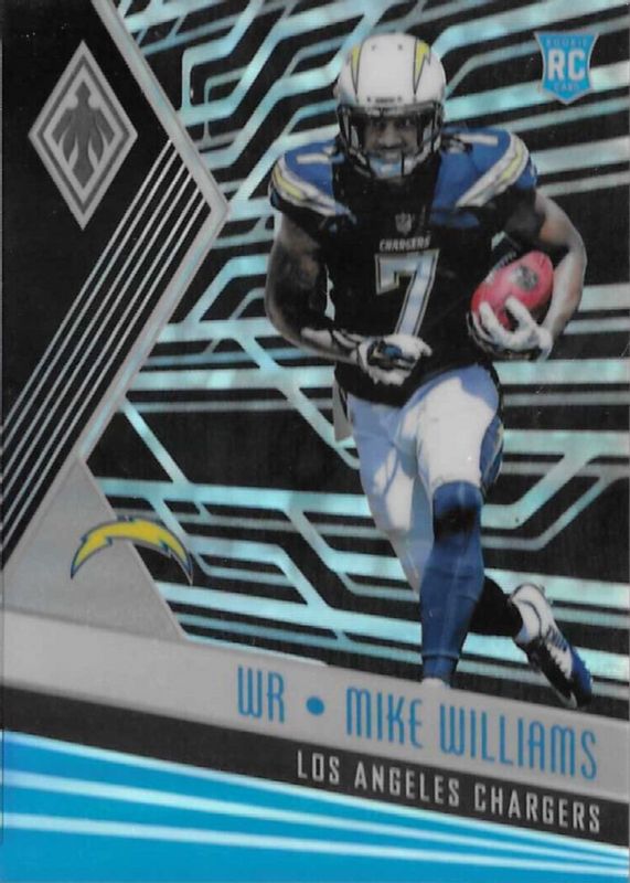 This card is 1 of 56 Mike Williams' card variations in the 2017 Phoenix set being tracked by Sports Card Investor, including Base, Color Burst, Red /299, Pink /199, and Purple /149.