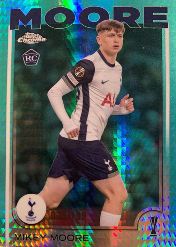 This card is 1 of 46 Mikey Moore's card variations in the 2024 Topps Chrome UEFA Club Competitions set being tracked by Sports Card Investor, including Base, Geometric Refractor, Hongbao Red Refractor, Magenta Shimmer Refractor, and Pulsar Refractor.