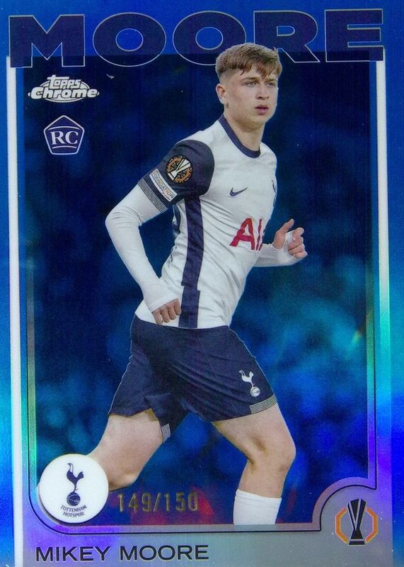 2024-25 Topps Chrome UEFA Mikey Moore #199 RC Rookie Blue Refractor /150