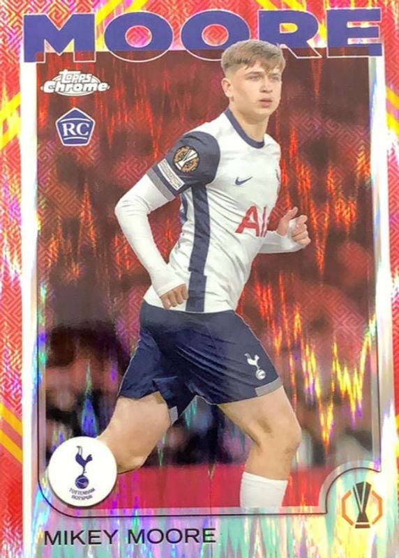 The Mikey Moore 2024 Topps Chrome UEFA Club Competitions #199 Hongbao Red Refractor Rookie card in Raw condition has not changed in price in the last 30 days and was last sold for $2.25 .