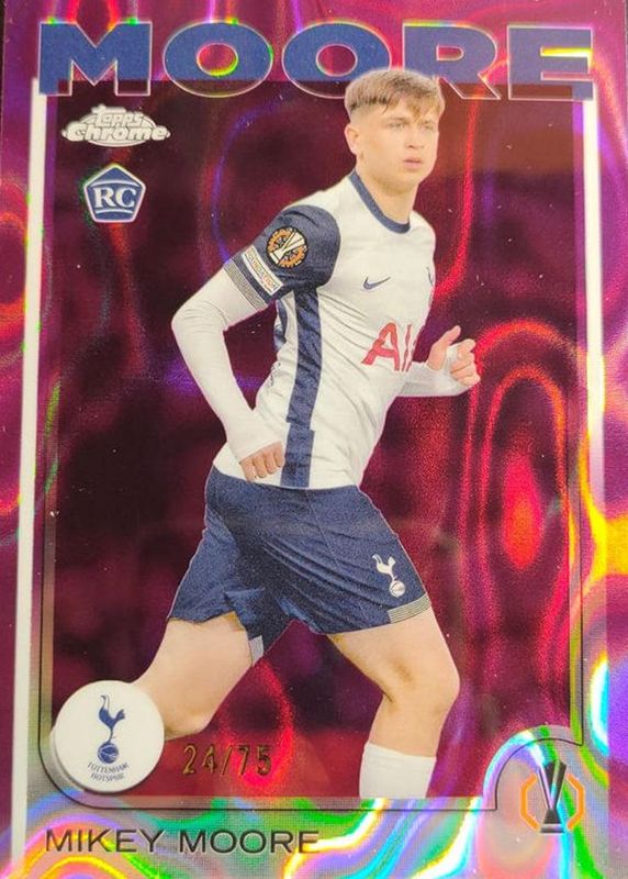 Best Prices Available For Sale of Mikey Moore 2024 Topps Chrome UEFA Club Competitions #199 Magenta Lava Refractor /75
