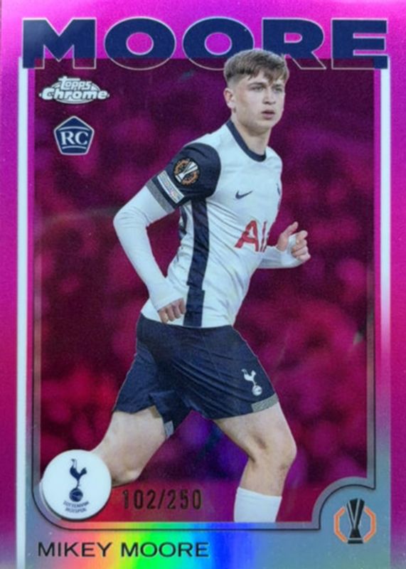 2024-25 Topps Chrome UEFA Mikey Moore RC#199 PINK Refractor 116/250 Tottenham