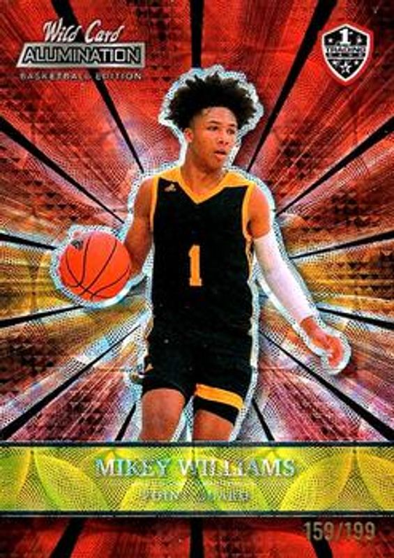 The Mikey Williams 2021 Wild Card Alumination #ABC-63 Red Chase Holo Lux Crystals Holo Paper /199 card is 1 of 525 Mikey Williams' card variations in the 2021 Wild Card Alumination set being tracked by Sports Card Investor, including Base, 100 Stripe, 10 Stripe, 20 Stripe, and 50 Stripe.