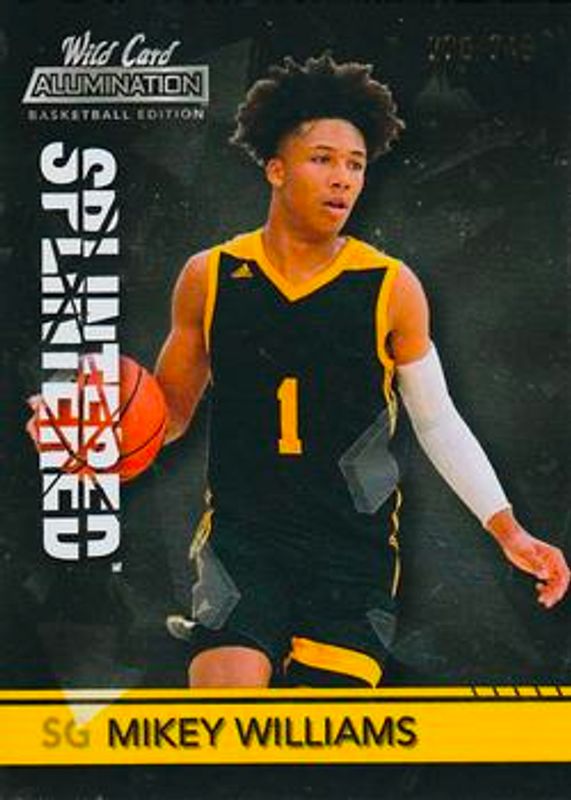 The Mikey Williams 2021 Wild Card Alumination #ASP-40 Splintered Black /249 card is 1 of 525 Mikey Williams' card variations in the 2021 Wild Card Alumination set being tracked by Sports Card Investor, including Base, 100 Stripe, 10 Stripe, 20 Stripe, and 50 Stripe.