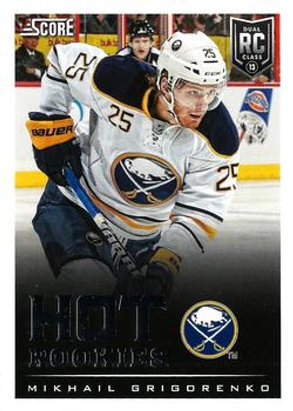 The Mikhail Grigorenko 2013 Score #643 Base Rookie card is 1 of 9 Mikhail Grigorenko's card variations in the 2013 Score set being tracked by Sports Card Investor, including Black, Gold, Red, Red Back, and First Goal.