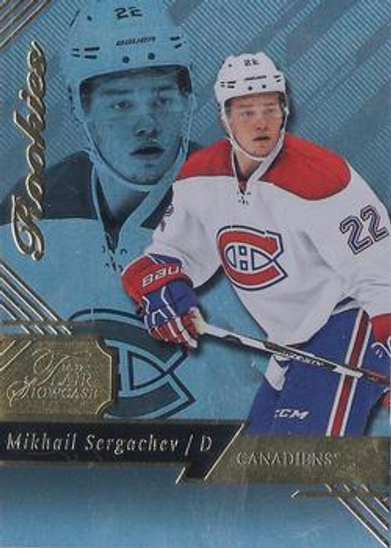 The Mikhail Sergachev 2016 Fleer Showcase #23 Flair Showcase Rookie card is 1 of 22 Mikhail Sergachev's card variations in the 2016 Fleer Showcase set being tracked by Sports Card Investor, including Base /399, Hot Prospects Autographs Patch /135, Red Glow /25, Hot Prospects Autographs Patch White Hot /10, and White Hot /5.