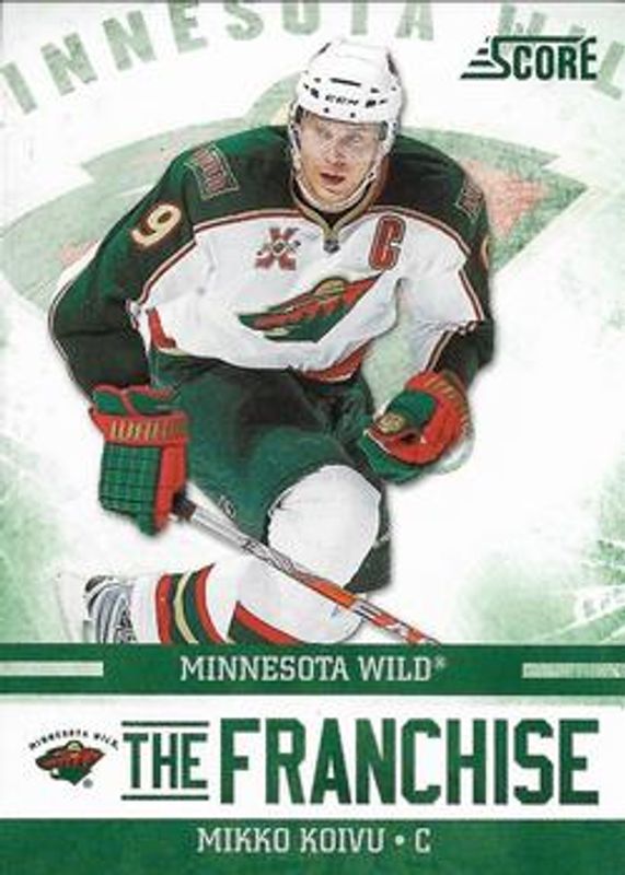 The Mikko Koivu 2011 Score #15 The Franchise card is 1 of 6 Mikko Koivu's card variations in the 2011 Score set being tracked by Sports Card Investor, including Base, Black Ice, Glossy, Gold Rush, and Snow Globe Die Cuts.