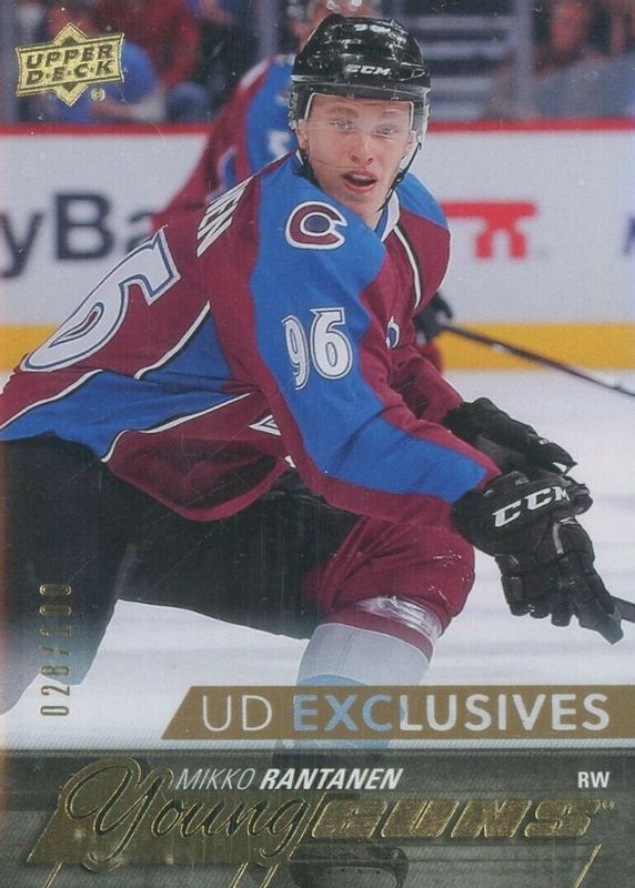The Mikko Rantanen 2015 Upper Deck #206 Young Guns - UD Exclusives /100 Rookie card in Raw condition has not changed in price in the last 30 days and was last sold for $500.00 .