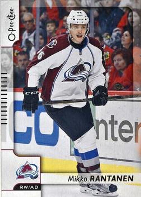The Mikko Rantanen 2017 O-Pee-Chee #42 Base card is 1 of 11 Mikko Rantanen's card variations in the 2017 O-Pee-Chee set being tracked by Sports Card Investor, including Rainbow Foil, Red, Retro, Retro Blank Back, and Black Rainbow Foil /100.