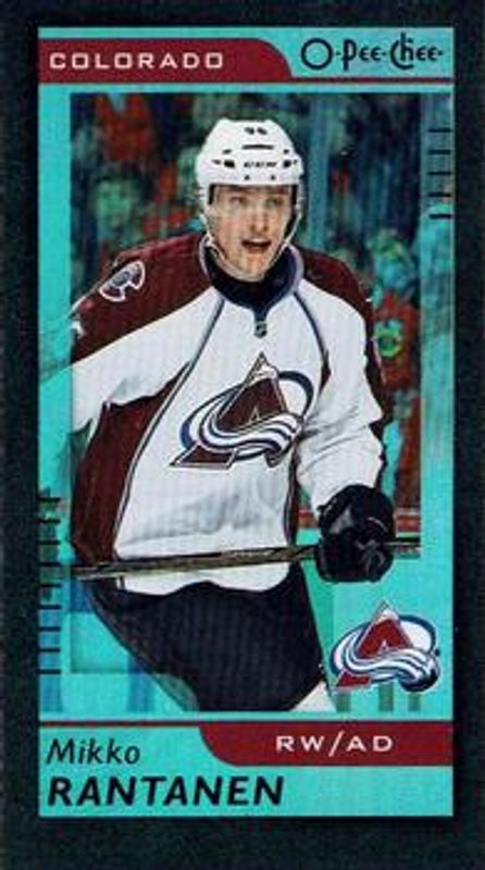 The Mikko Rantanen 2017 O-Pee-Chee #M-28 Minis Black Foil card is 1 of 11 Mikko Rantanen's card variations in the 2017 O-Pee-Chee set being tracked by Sports Card Investor, including Base, Rainbow Foil, Red, Retro, and Retro Blank Back.