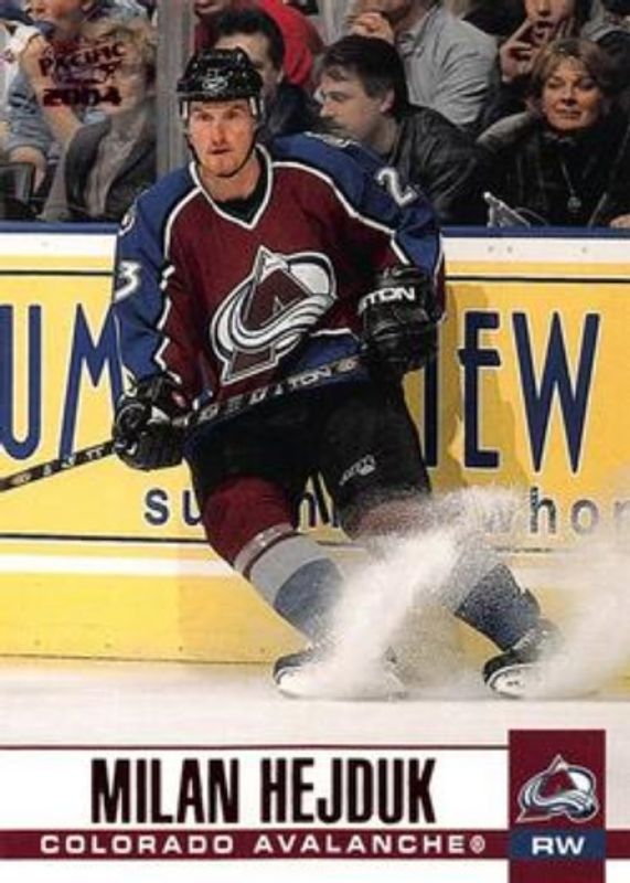 The Milan Hejduk 2003 Pacific #84 Red card is 1 of 5 Milan Hejduk's card variations in the 2003 Pacific set being tracked by Sports Card Investor, including Base /999, Blue /250, L'Internationale des Collectionneurs Montreal /1, and National Convention /1.