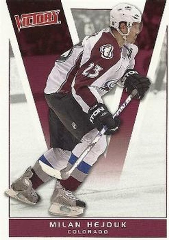 The Milan Hejduk 2010 Upper Deck Victory #54 Base card is 1 of 4 Milan Hejduk's card variations in the 2010 Upper Deck Victory set being tracked by Sports Card Investor, including Black, Gold, and Red.