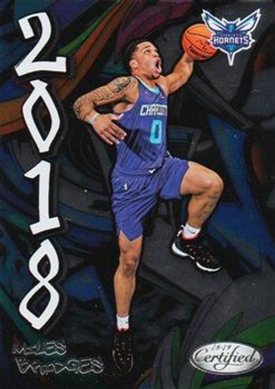 The Miles Bridges 2018 Certified #18-33 2018 Graffiti Rookie card is 1 of 17 Miles Bridges' card variations in the 2018 Certified set being tracked by Sports Card Investor, including Base, Certified Future, Mirror, Mirror Red /299, and Mirror Blue /199.