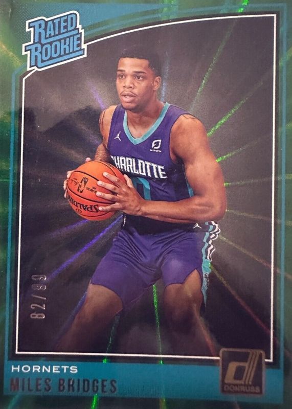 Auctions Ending Soon for Miles Bridges 2018 Donruss #172 Green Laser /99 Rookie RAW