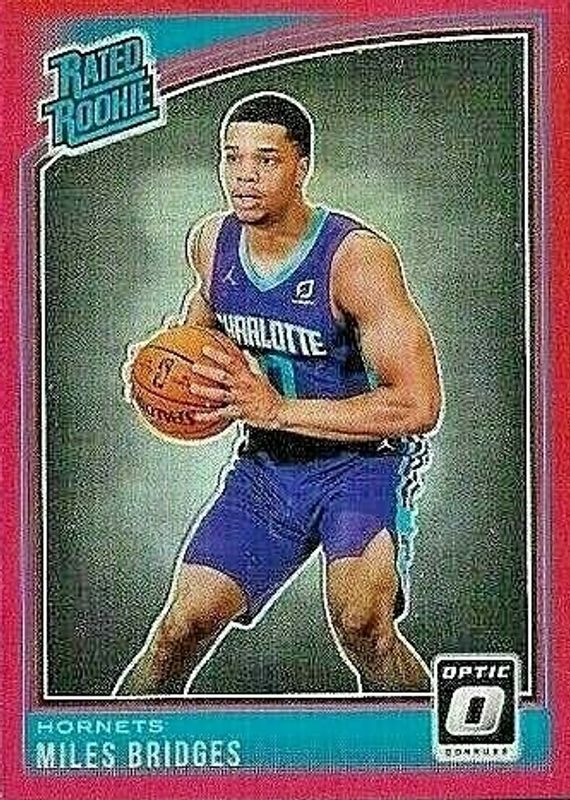 The Miles Bridges 2018 Optic #172 Red /99 Rookie card in Raw condition has not changed in price in the last 30 days and was last sold for $18.00 .