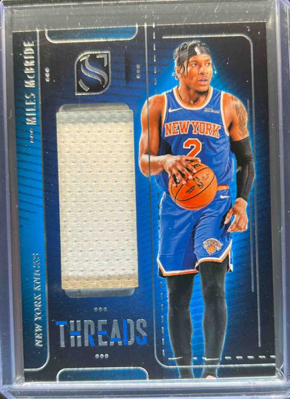 Miles McBride's Basketball cards are available in at least 32 sets. Miles McBride's biggest 7-day price movers are 2024 Silhouette #THR-MLE Threads, 2024 Silhouette #72 Threads - Holo Platinum /5, and 2024 Silhouette #72 Threads - Bronze /49.