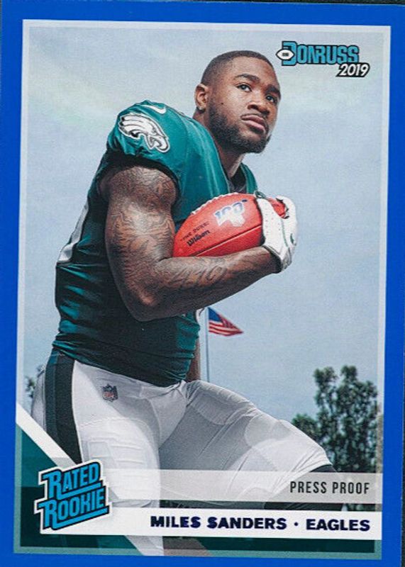 2019 Panini Donruss Miles Sanders Rated Rookie Press Proof Blue RC Eagles #322