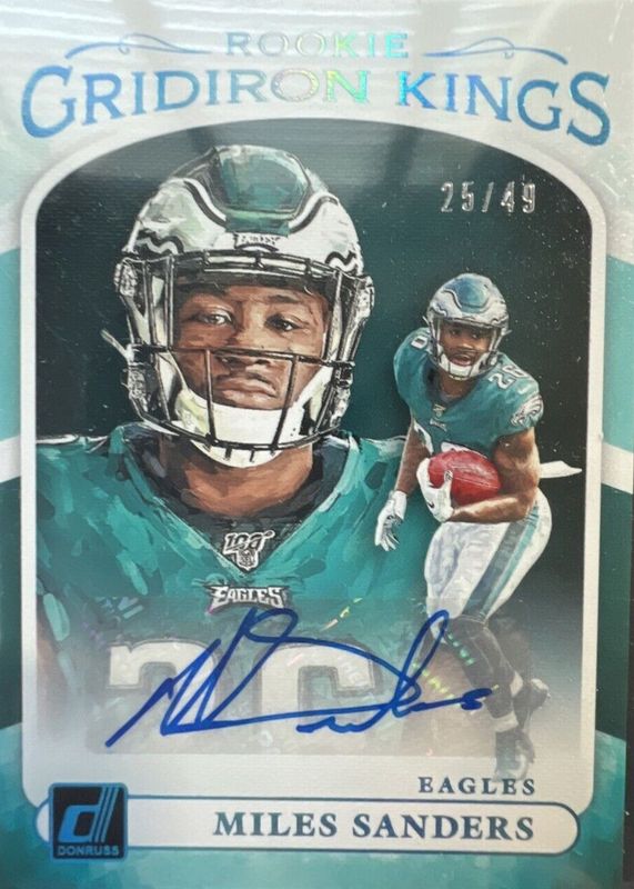 The Miles Sanders 2019 Donruss #RGK-10 Rookie Gridiron Kings Autographs /49 card in Raw condition has not changed in price in the last 30 days and was last sold for $5.50 .