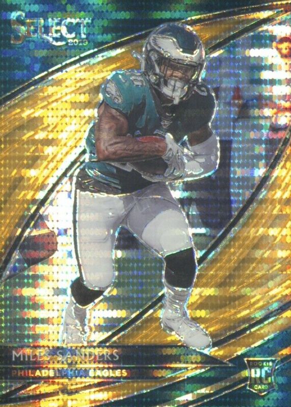 This card is 1 of 34 Miles Sanders' card variations in the 2019 Select set being tracked by Sports Card Investor, including Field Level, Premier Level, Field Level Silver, Premier Level Silver, and Premier Level Tri-Color /199.