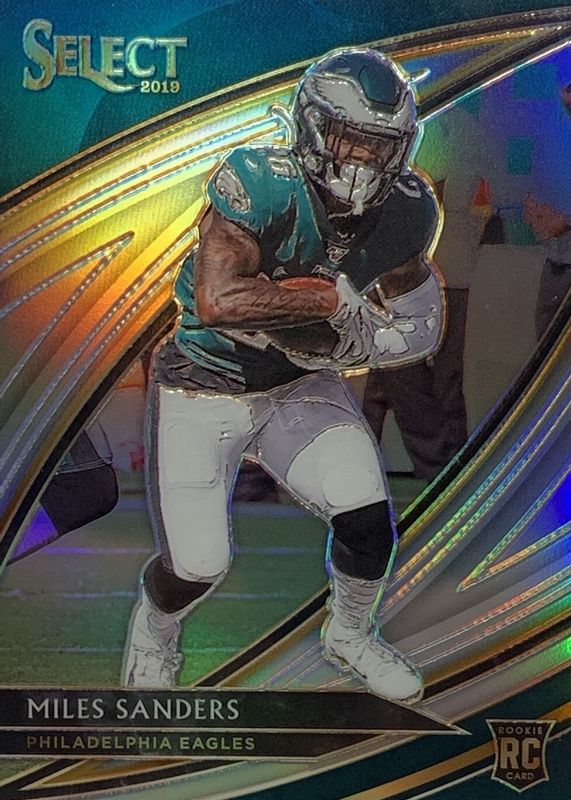 This card is 1 of 34 Miles Sanders' card variations in the 2019 Select set being tracked by Sports Card Investor, including Field Level, Premier Level, Premier Level Silver, Premier Level Tri-Color /199, and Premier Level Blue /149.