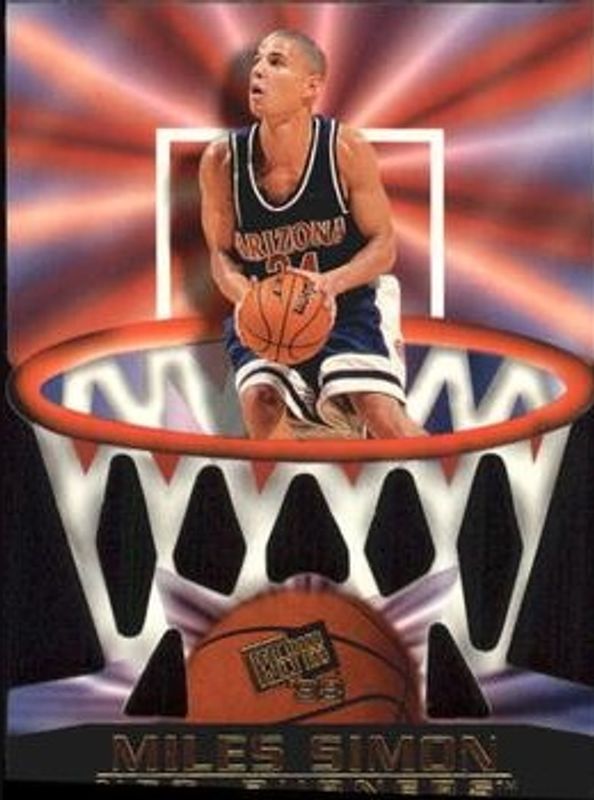 The Miles Simon 1998 Press Pass Flagship #NB-13 Net Burners Rookie card is 1 of 9 Miles Simon's card variations in the 1998 Press Pass Flagship set being tracked by Sports Card Investor, including Base, In The Zone, Red, Reflectors, and Torquers.