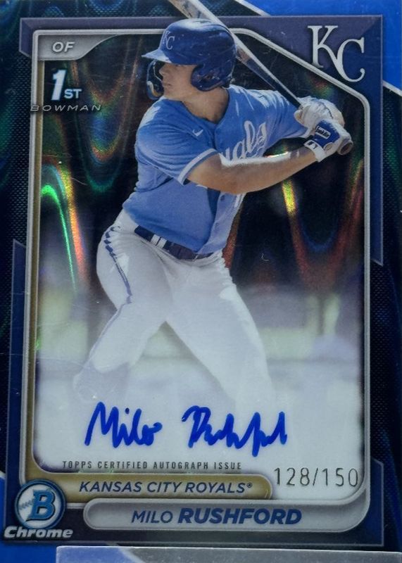 2024 1st Bowman Chrome Milo Rushford Blue RayWave Auto/150 #CPA-MR KC Royals