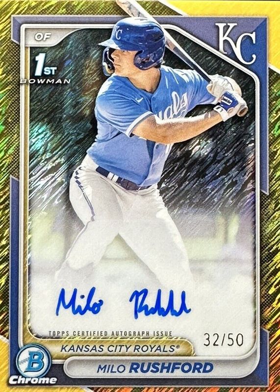 2024 Bowman Chrome MILO RUSHFORD /50 Auto Gold Refractor 1st RC Royals AP602