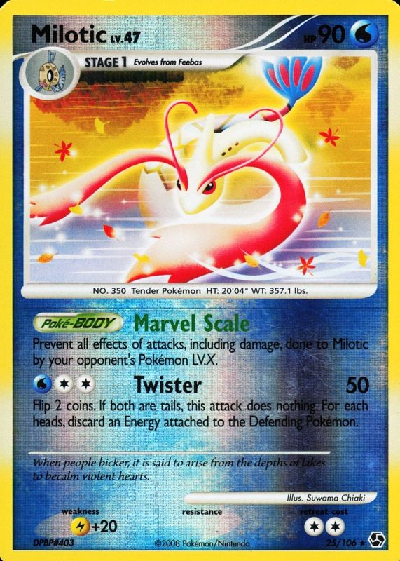 Pokemon MILOTIC 25/106 Reverse Holo (2008 Great Encounters) LP/Light Play