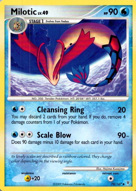 The Milotic 2009 Platinum: Supreme Victors #070/147 Base card in Raw TCG (Lightly Played) condition has not changed in price in the last 30 days and was last sold for $2.55 .