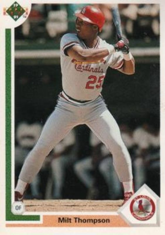 The Milt Thompson 1991 Upper Deck #309 Base card is 1 of 2 Milt Thompson's card variations in the 1991 Upper Deck set being tracked by Sports Card Investor, including Base.