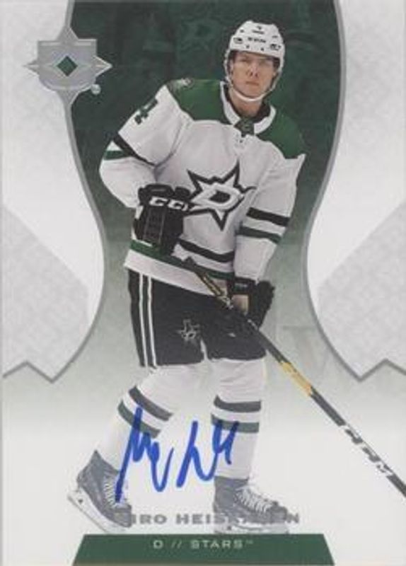 The Miro Heiskanen 2020 Upper Deck Ultimate Collection #26 2019 Upper Deck Ultimate Collection Update: Autographs card is 1 of 15 Miro Heiskanen's card variations in the 2020 Upper Deck Ultimate Collection set being tracked by Sports Card Investor, including Base /299, Autographs, Gold /35, Autographs Gold /15, and Jumbo Patch /15.