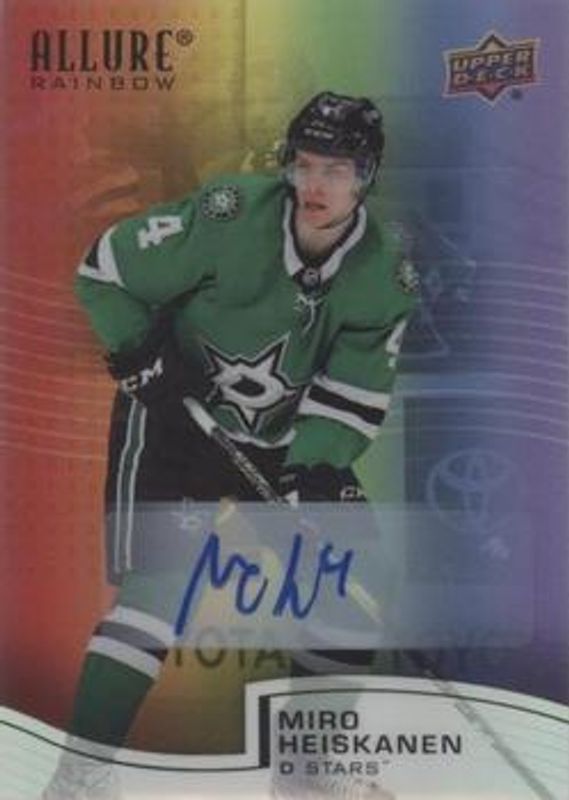 Miro Heiskanen 2021 Upper Deck Allure #R-69 Rainbow Full Rainbow Autographs RAW Price Guide