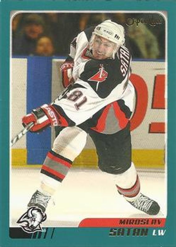 The Miroslav Satan 2003 O-Pee-Chee #66 Base card is 1 of 4 Miroslav Satan's card variations in the 2003 O-Pee-Chee set being tracked by Sports Card Investor, including Blue /500, Gold /50, and Red /100.