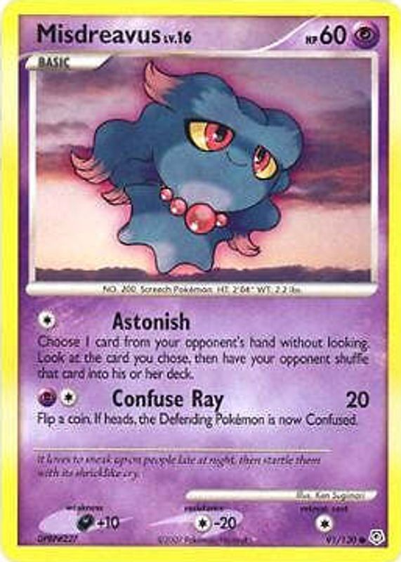 The Misdreavus 2007 Diamond & Pearl #091/130 Base card in Raw TCG (Near Mint) condition has not changed in price in the last 30 days and was last sold for $0.99 .
