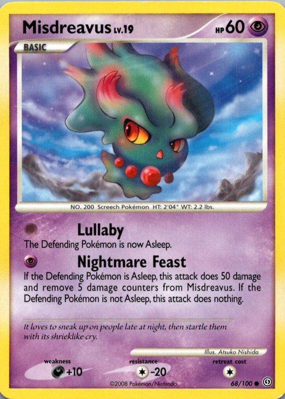 The Misdreavus 2008 Diamond & Pearl: Stormfront #068/100 Base card in Raw TCG (Lightly Played) condition has not changed in price in the last 30 days and was last sold for $1.97 .