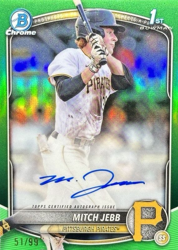 2025 Bowman Chrome Mitch Jebb 1st Green Refractor Auto /99 #CPA-MJ SP • Pirates