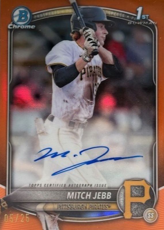 2025 Bowman Mitch Jebb Chrome 1st True Orange Refractor Auto 24/25 Pirates SP