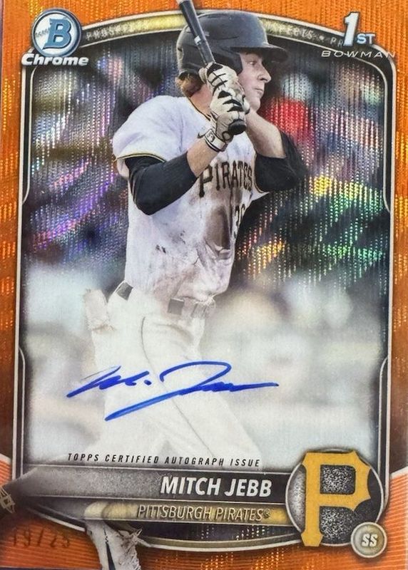 Mitch Jebb 2025 Bowman Chrome 1st Orange Wave Refractor Auto /25 #CPA-MJ Pirates
