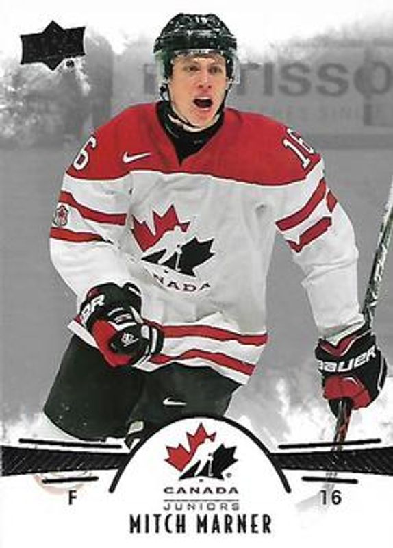 The Mitch Marner 2016 Upper Deck Team Canada Juniors #81 Base Rookie card is 1 of 39 Mitch Marner's card variations in the 2016 Upper Deck Team Canada Juniors set being tracked by Sports Card Investor, including #24 Base, #101 Base, #81 Exclusives /175, #24 Exclusives /175, and #24 High Gloss Spectrum /25.