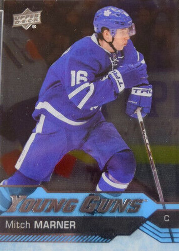 This card is 1 of 36 Mitch Marner's card variations in the 2016 Upper Deck set being tracked by Sports Card Investor, including Young Guns Base, Young Guns Canvas, Young Guns - Gold Rainbow Foil, Young Guns - Jumbo, and Young Guns - Silver Foil.