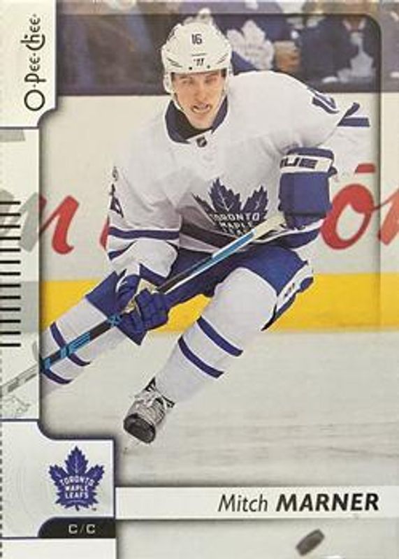 The Mitch Marner 2017 O-Pee-Chee Blaster Box Bottoms card is 1 of 22 Mitch Marner's card variations in the 2017 O-Pee-Chee set being tracked by Sports Card Investor, including #558 Base, #329 Base, #329 Rainbow Foil, #558 Rainbow Foil, and #558 Red.