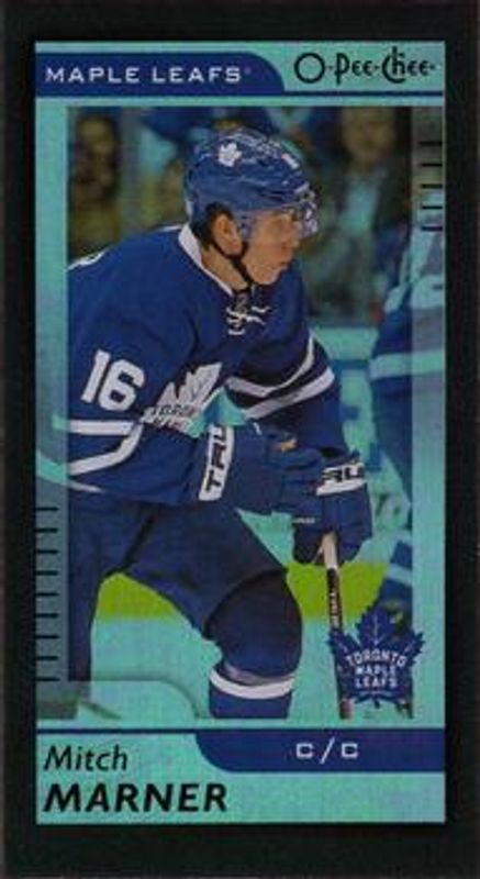 The Mitch Marner 2017 O-Pee-Chee #M-2 Minis Black Foil card is 1 of 22 Mitch Marner's card variations in the 2017 O-Pee-Chee set being tracked by Sports Card Investor, including #558 Base, #329 Base, #329 Rainbow Foil, #558 Rainbow Foil, and #558 Red.