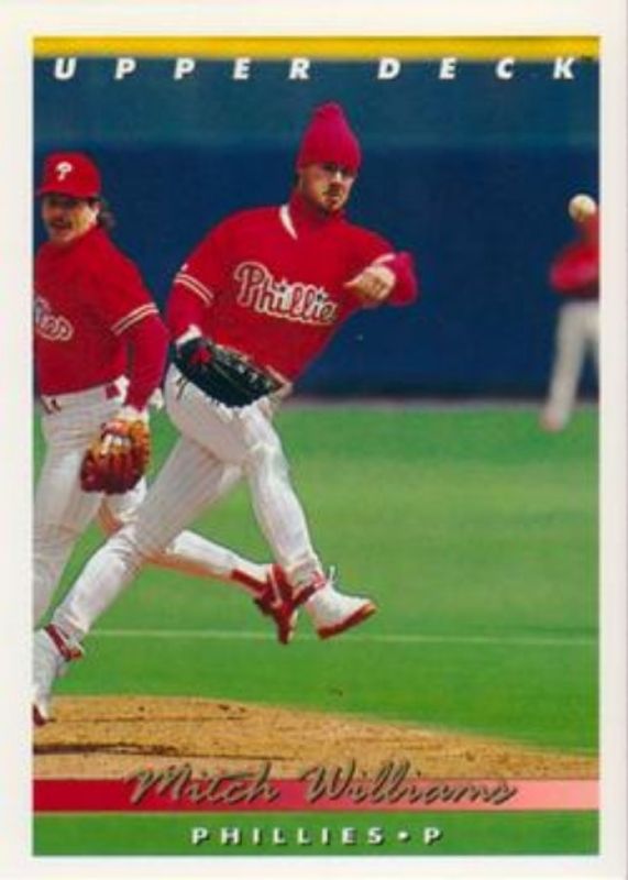 The Mitch Williams 1993 Upper Deck #113 Base card is 1 of 2 Mitch Williams' card variations in the 1993 Upper Deck set being tracked by Sports Card Investor, including Gold Hologram.