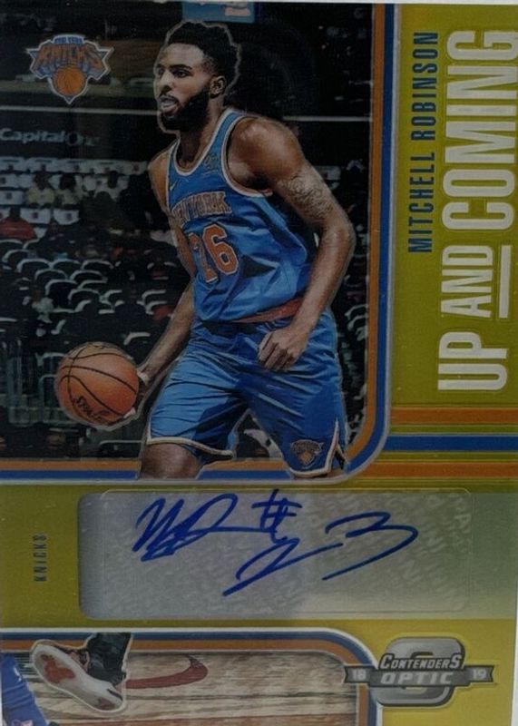 This card is 1 of 3 Mitchell Robinson's card variations in the 2018 Contenders Optic set being tracked by Sports Card Investor, including Up and Coming Contenders Autographs /99, and Up and Coming Autographs - Gold Vinyl /1.